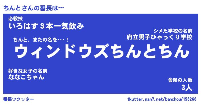 | ヒーロー風カッコイイあだ名 | 『スーパーチント』『ウルトラちんとマン』 |