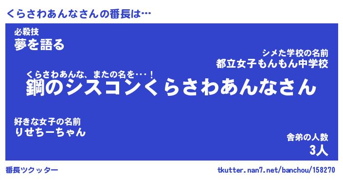 | 意味不明あだ名 | 『ペロリンくらさわあんな』 |