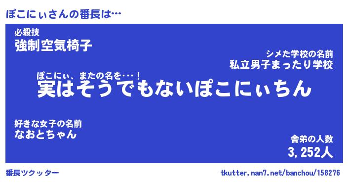 | 肩書あだ名 | 『ぽこにぃ店長』『ぽこにぃ国家主席』 |