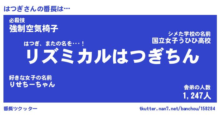 | ヒーロー風カッコイイあだ名 | 『スーパーハツギ』『ウルトラはつぎマン』 |