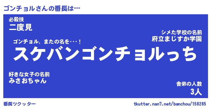 | ポケモン風あだ名 | 『ゴンチュウ』『ゴンチダネ』 |