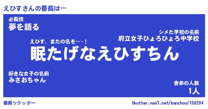 | 伝説のあだ名 | 『封印されしスナイパーえひす』 |