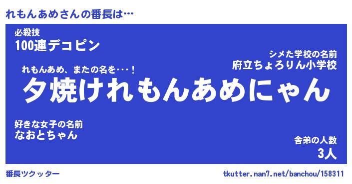 | 伝説のあだ名 | 『封印されしスナイパーれもんあめ』 |