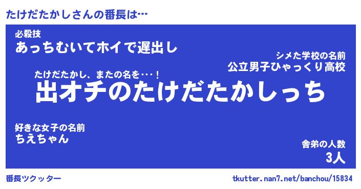 | ポケモン風あだ名 | 『タケチュウ』『タケダダネ』 |