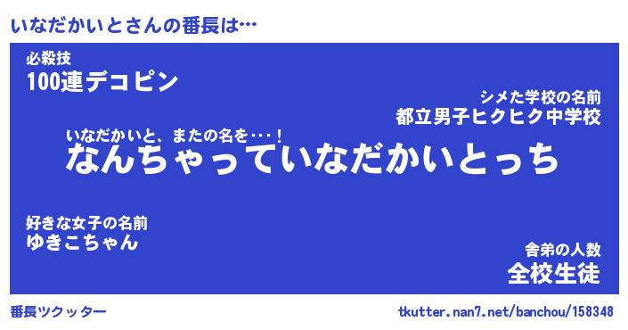 | 伝説のあだ名 | 『伝説のスナイパーいなだかいと』 |