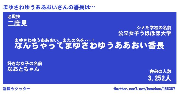 | 肩書あだ名 | 『まゆさわゆうああおい御曹司』 |