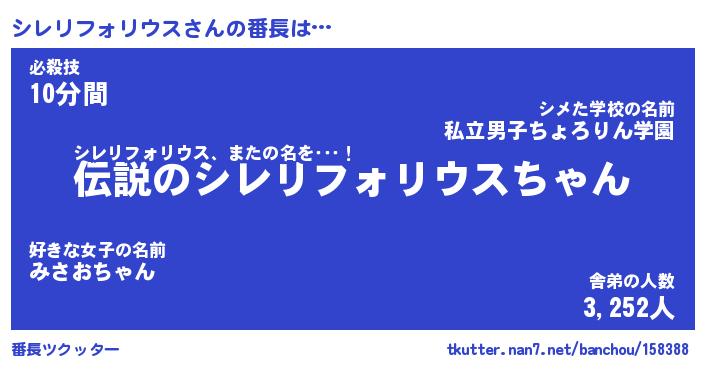 | 男性向けラノベタイトル風あだ名 | 『シレリフォリウスの憂鬱』 |