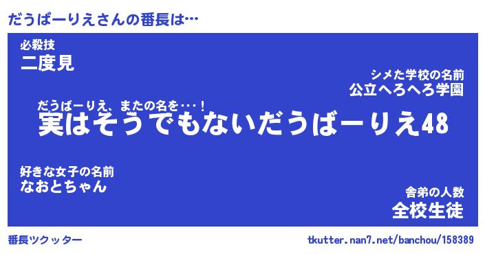 | 恥ずかしいあだ名 | 『プリティーだうばーりえ』『だうっちょ』 |