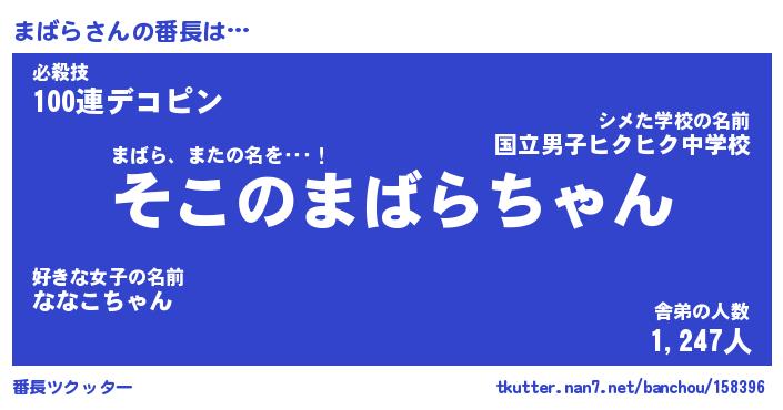 | ピコ太郎風あだ名 | 『マコ史郎』『ピマ五郎』『マバ次郎』 |