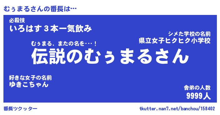 | 伝説のあだ名 | 『伝説のスナイパーむぅまる』 |