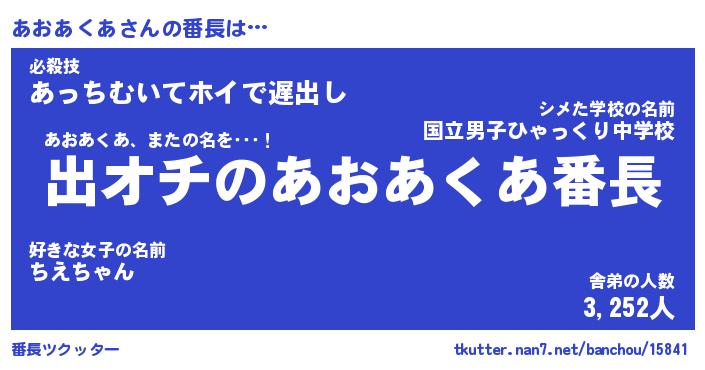 | 欧米人風あだ名 | 『マイケルあおあくあ』 |