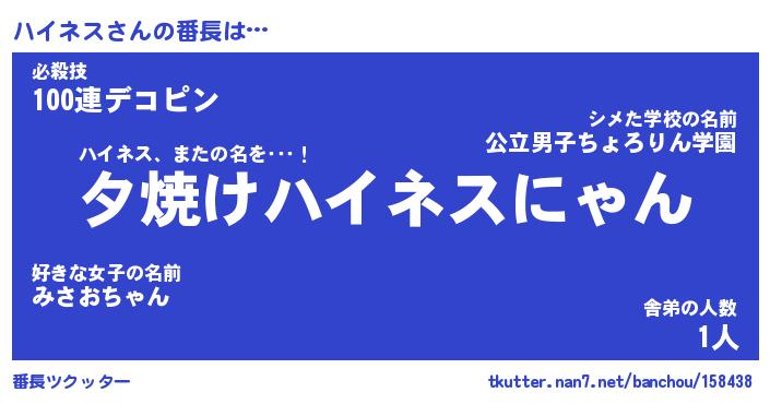 | ヒーロー風カッコイイあだ名 | 『スーパーハイネス』『魔戒騎士ハイ』 |
