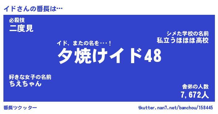 | ヘコむあだ名 | 『イドふぇ~』『なまこ酢』『イドを』 |