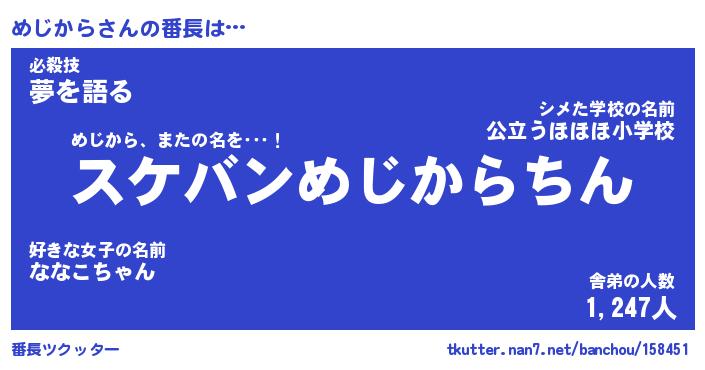 | ヒーロー風カッコイイあだ名 | 『スーパーメジカラ』『銀牙騎士メジ』 |