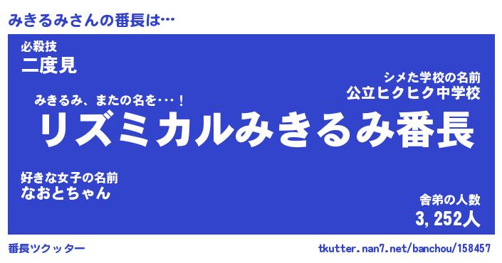 | 意味不明あだ名 | 『ペロリンみきるみ』『永久保存みきるみ』 |
