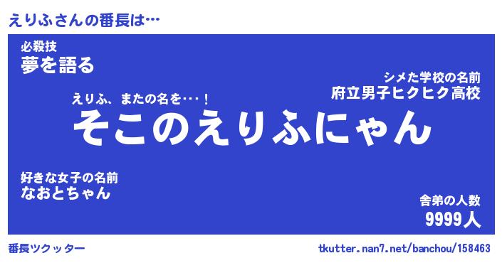 | 意味不明あだ名 | 『ペロリンえりふ』『えりふフォーエバー』 |