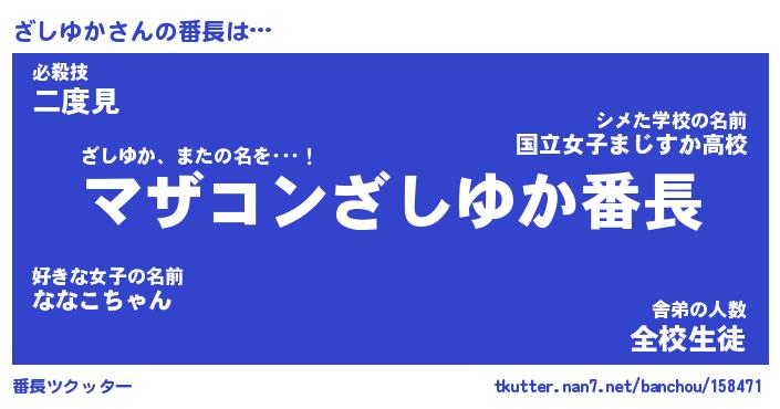 | 伝説のあだ名 | 『封印されしスナイパーざしゆか』 |