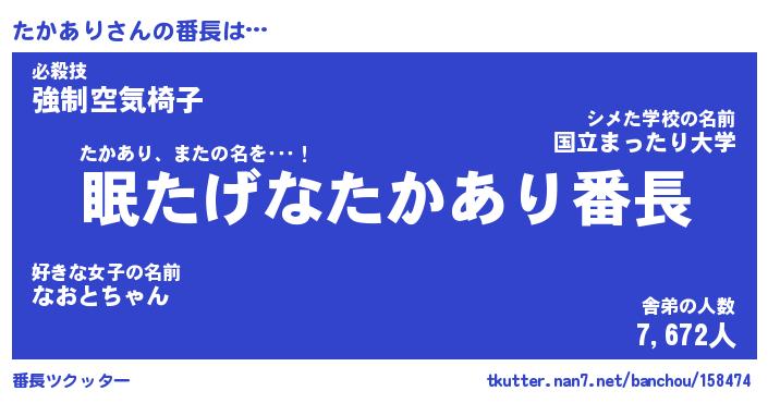 | 伝説のあだ名 | 『封印されしスナイパーたかあり』 |