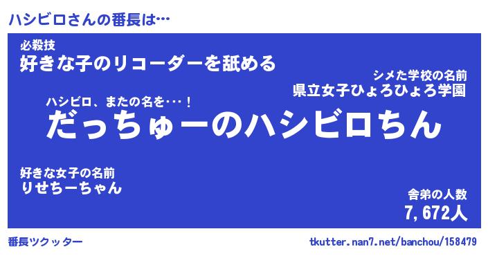 | ファンタジー風あだ名 | 『ハシフェル』『エターナルハシビロー』 |