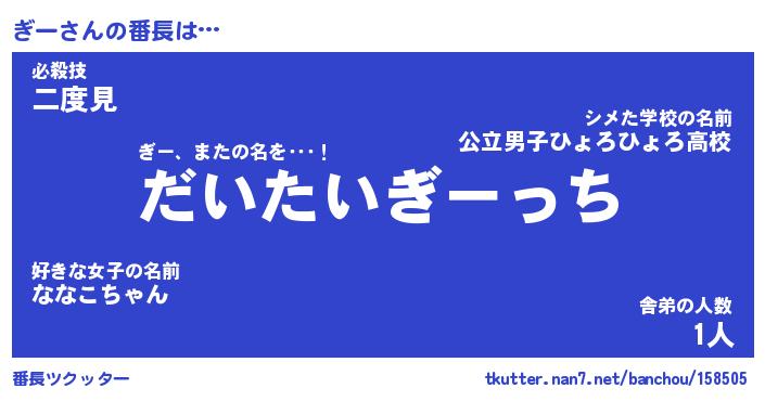 | ヘコむあだ名 | 『ぎーにゅー』『酢こんぶ』『ぎーを』 |
