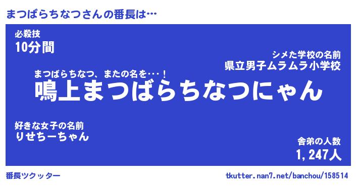 | 伝説のあだ名 | 『封印されしスナイパーまつばらちなつ』 |