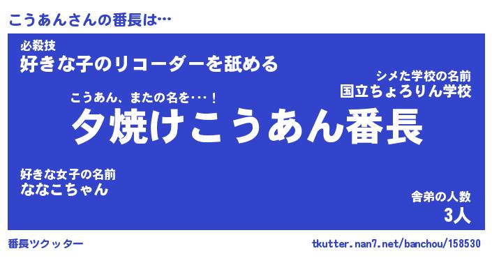| 意味不明あだ名 | 『ペロリンこうあん』『永久保存こうあん』 |