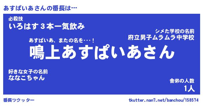 | ヘコむあだ名 | 『あすにゅー』『なまこ酢』 |