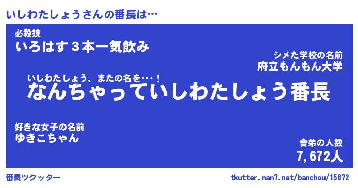 | 伝説のあだ名 | 『伝説のスナイパーいしわたしょう』 |