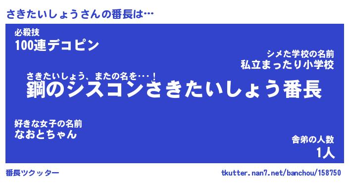 | 伝説のあだ名 | 『封印されしスナイパーさきたいしょう』 |