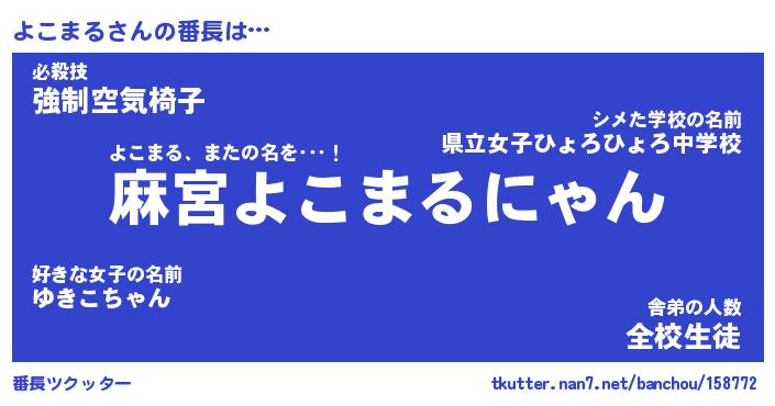 | 伝説のあだ名 | 『不死鳥のスナイパーよこまる』 |