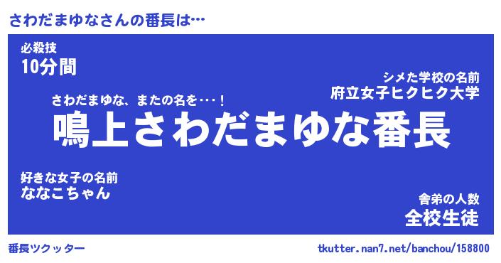 | 伝説のあだ名 | 『封印されしスナイパーさわだまゆな』 |