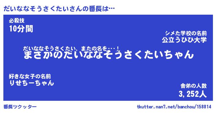 | 男性向けラノベタイトル風あだ名 | 『だいななそうさくたいの憂鬱』 |
