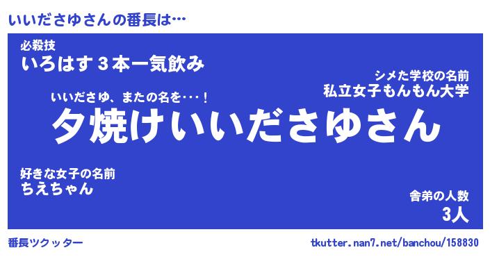 | 肩書あだ名 | 『いいださゆ御曹司』『いいださゆ大統領』 |
