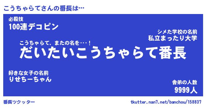 | 伝説のあだ名 | 『不死鳥のスナイパーこうちゃらて』 |