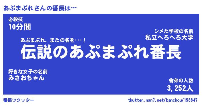 | 伝説のあだ名 | 『伝説のスナイパーあぷまぷれ』 |