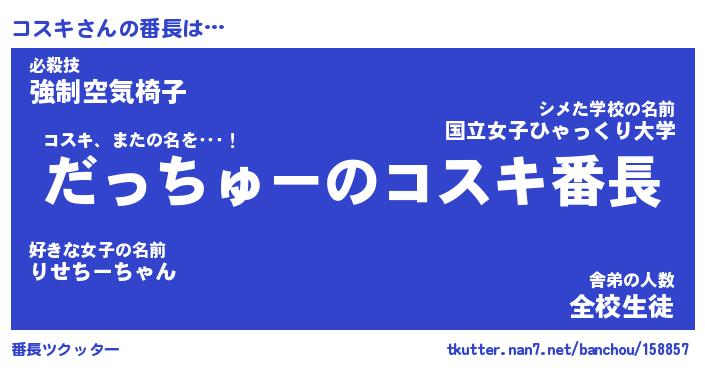 | ポケモン風あだ名 | 『コスチュウ』『コスキダネ』 |