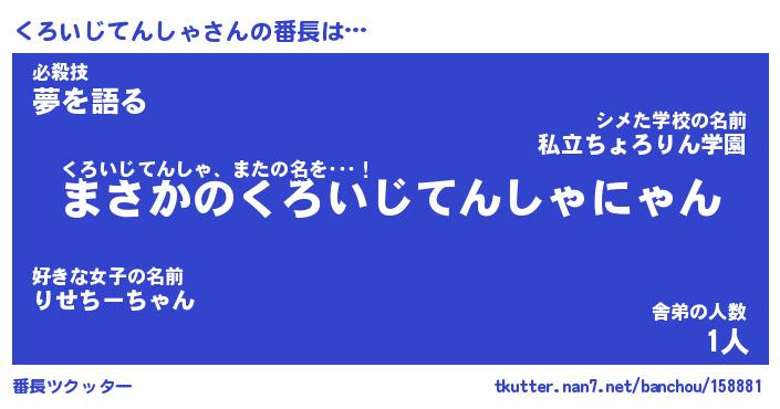 | 伝説のあだ名 | 『伝説のスナイパーくろいじてんしゃ』 |