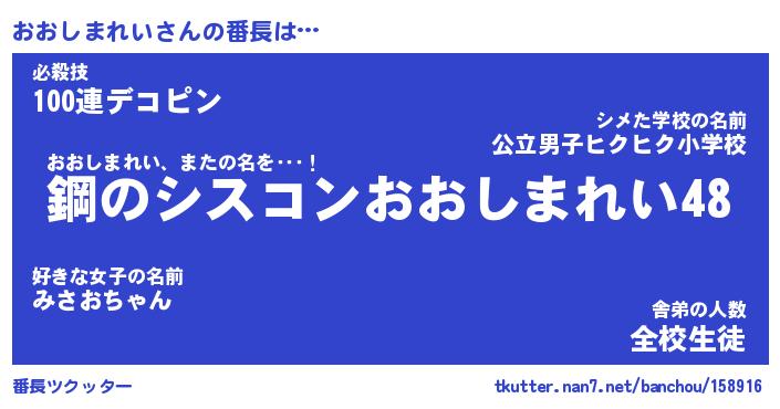 | 欧米人風あだ名 | 『マイケルおおしまれい』 |