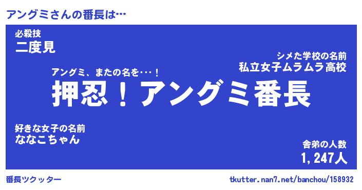 | ヒーロー風カッコイイあだ名 | 『スーパーアングミ』『銀牙騎士アン』 |