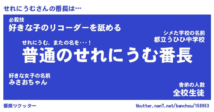 | 肩書あだ名 | 『せれにうむ社長』『せれにうむ国家主席』 |
