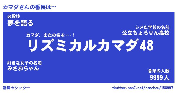 | ヘコむあだ名 | 『カマもー』『牛乳』『カマぷりん』 |