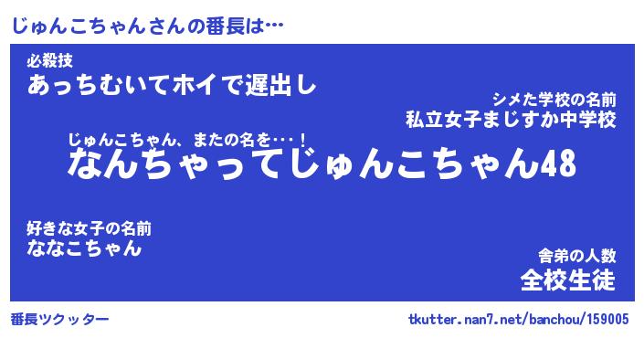 | ヘコむあだ名 | 『じゅにゅー』『酢こんぶ』『じゅを』 |