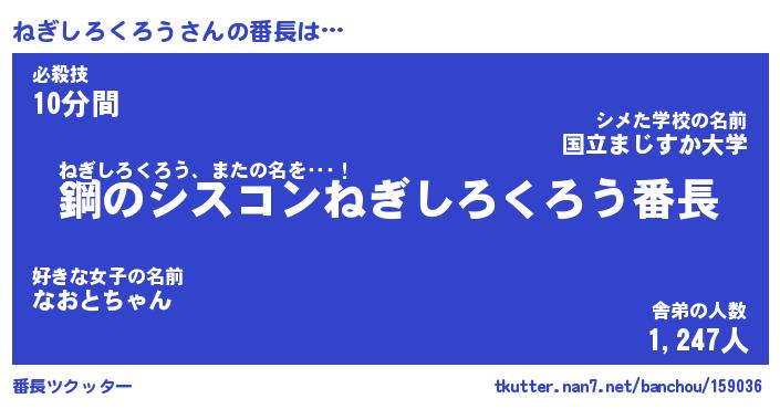 | 伝説のあだ名 | 『封印されしスナイパーねぎしろくろう』 |