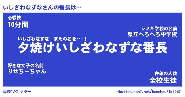 | 伝説のあだ名 | 『封印されしスナイパーいしざわなずな』 |