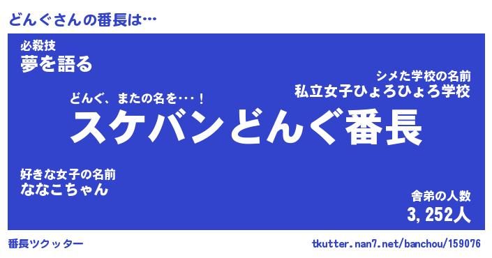 | 意味不明あだ名 | 『ペロリンどんぐ』『どんぐフォーエバー』 |