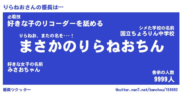| 肩書あだ名 | 『りらねお御曹司』『りらねお国家主席』 |