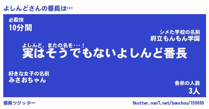 | ポケモン風あだ名 | 『ヨシチュウ』『ヨシンダネ』 |