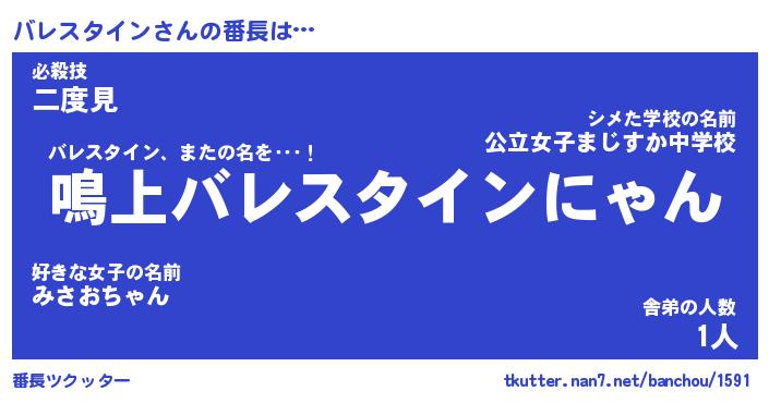 | 男性向けラノベタイトル風あだ名 | 『バレスタインアートオンライン』 |