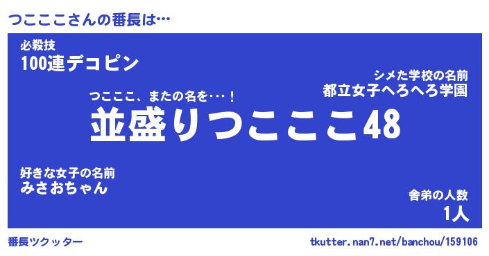| 意味不明あだ名 | 『ペロリンつこここ』『永久保存つこここ』 |