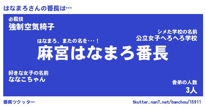 | 意味不明あだ名 | 『ペロリンはなまろ』『永久保存はなまろ』 |